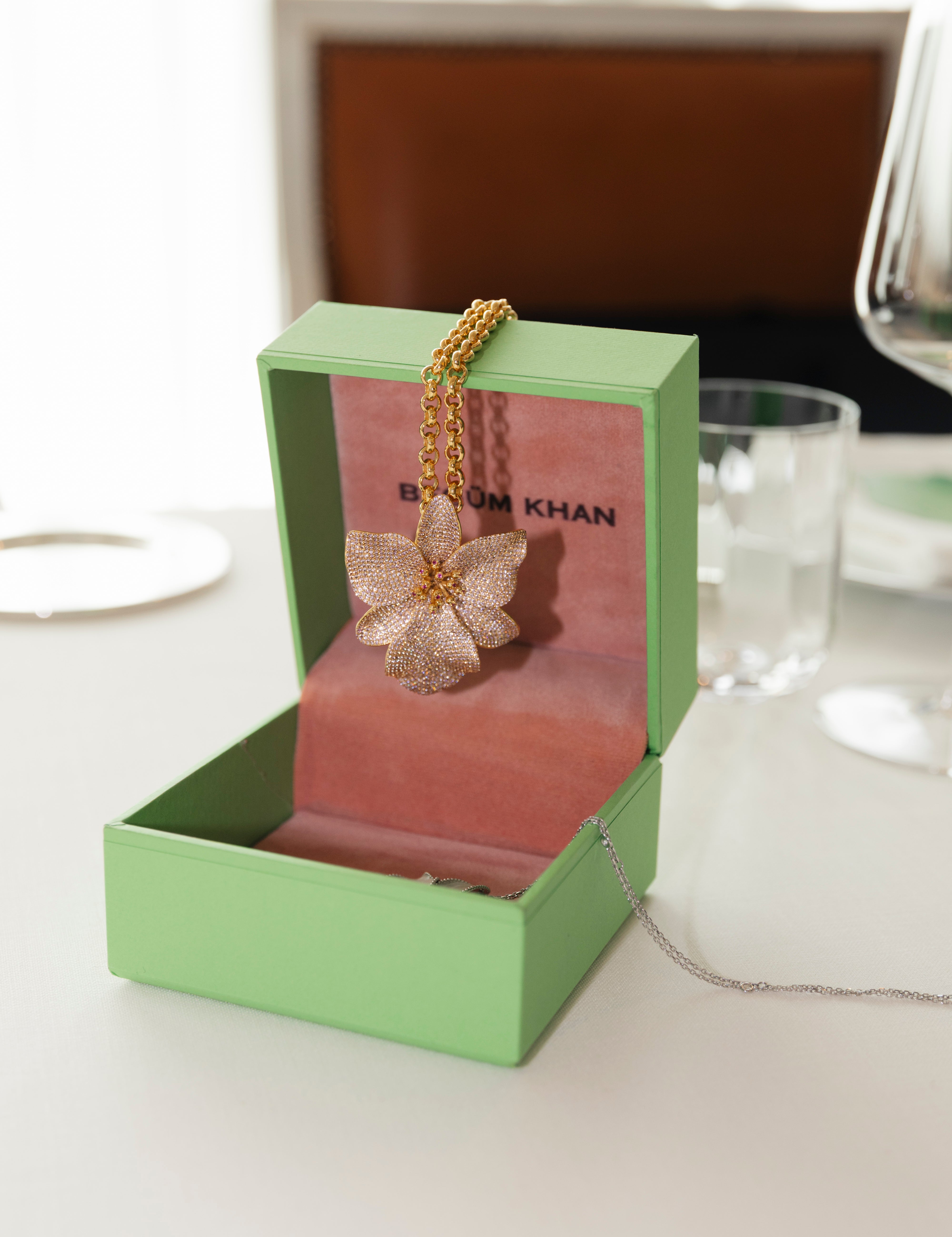Petals dressed in gold and enameled in shimmering tones of “mother-of-pearl,” each diamond, set by hand into the bud, carries a whisper of heritage while glowing with the elegance of the present.
